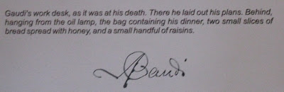 And the below photo shows a sign that is displayed by a room that was designed to look exactly like Gaudi's office at the time of his death.
